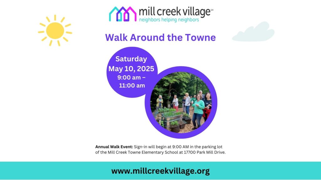 Founded in 2013, Mill Creek Village (MCV) is a volunteer-led, 501 (c) 3, tax-exempt, nonprofit charitable organization dedicated to assisting older neighbors (60+ years of age) in Mill Creek Towne to maintain their independence and age well at home. Services include transportation support, grocery shopping, friendly home visits and check-in phone contacts. MCV also fosters community-wide, inter-generational social connection via several annual events like this one.