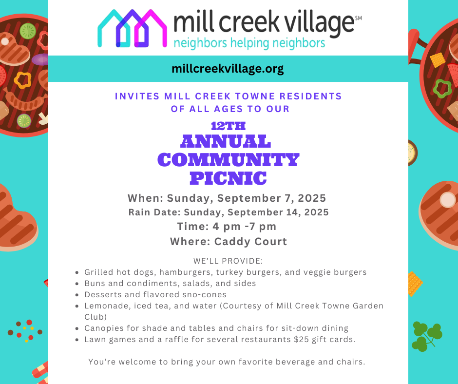 Since 2013, Mill Creek Village (MCV) has been a volunteer-led, nonprofit charitable community service organization dedicated to “Neighbors Helping Neighbors.” MCV provides services to help older residents (60 years of age and older) in the neighborhood of Mill Creek Towne in Derwood, Maryland to maintain their independence and remain in their homes as they age and confront medical challenges, physical incapacity, lack of mobility and loneliness.